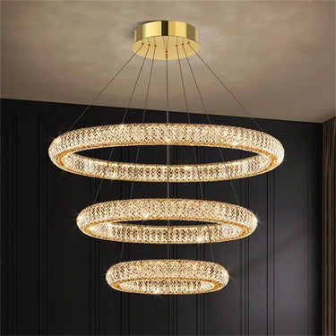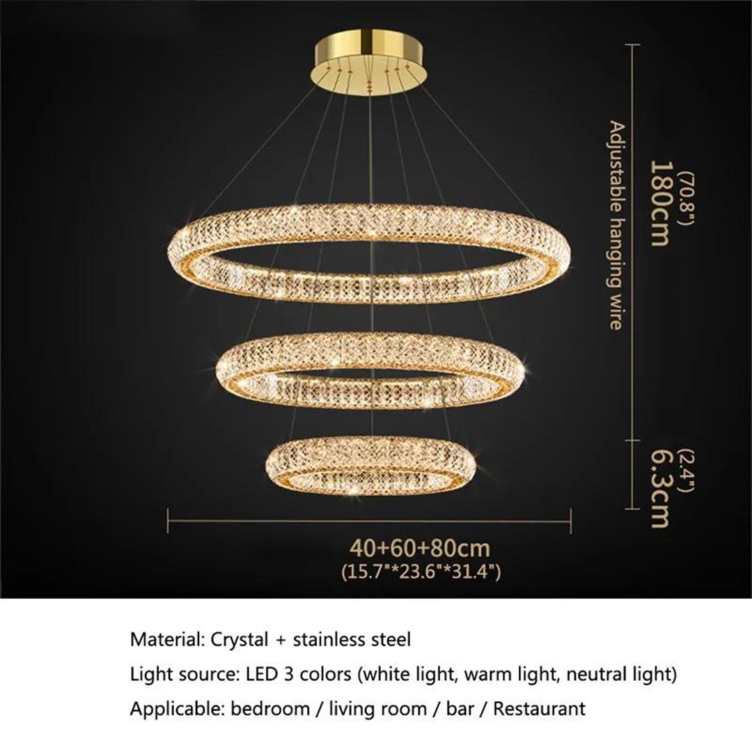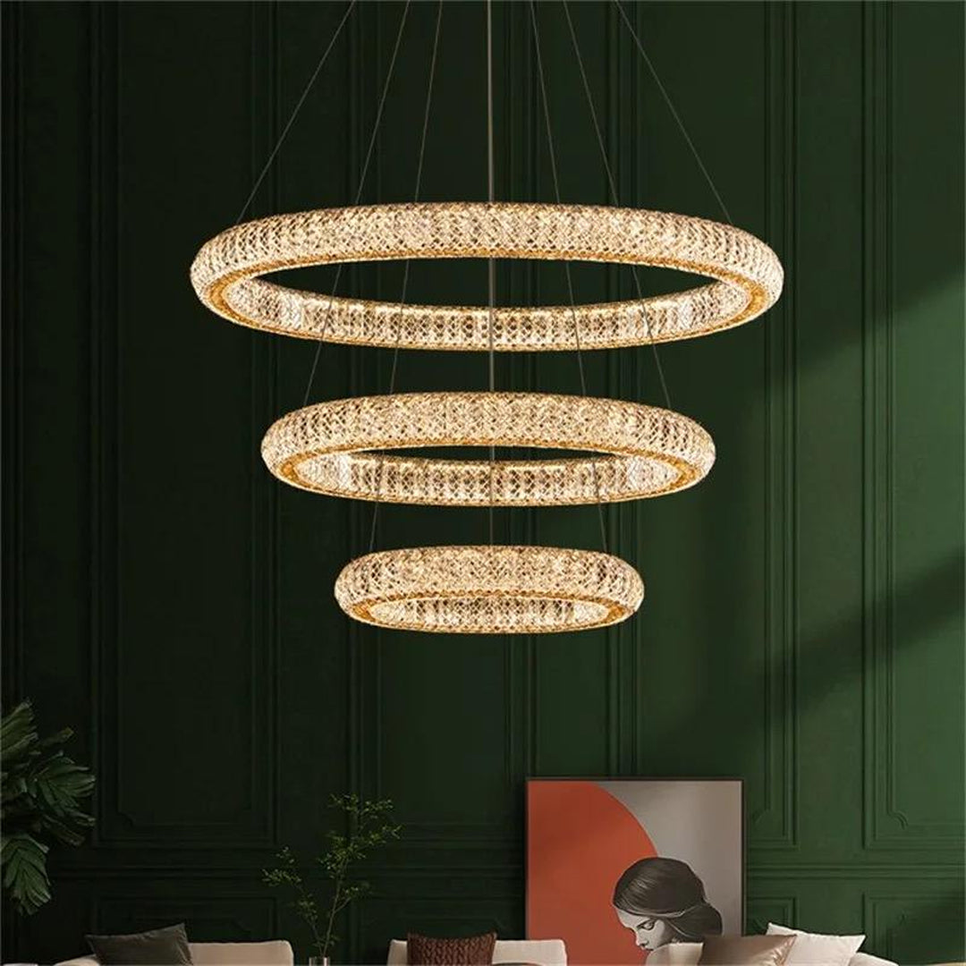 Modern Luxury Crystal Pendant Light Round Rings LED Fixtures Decorative House Chandelier