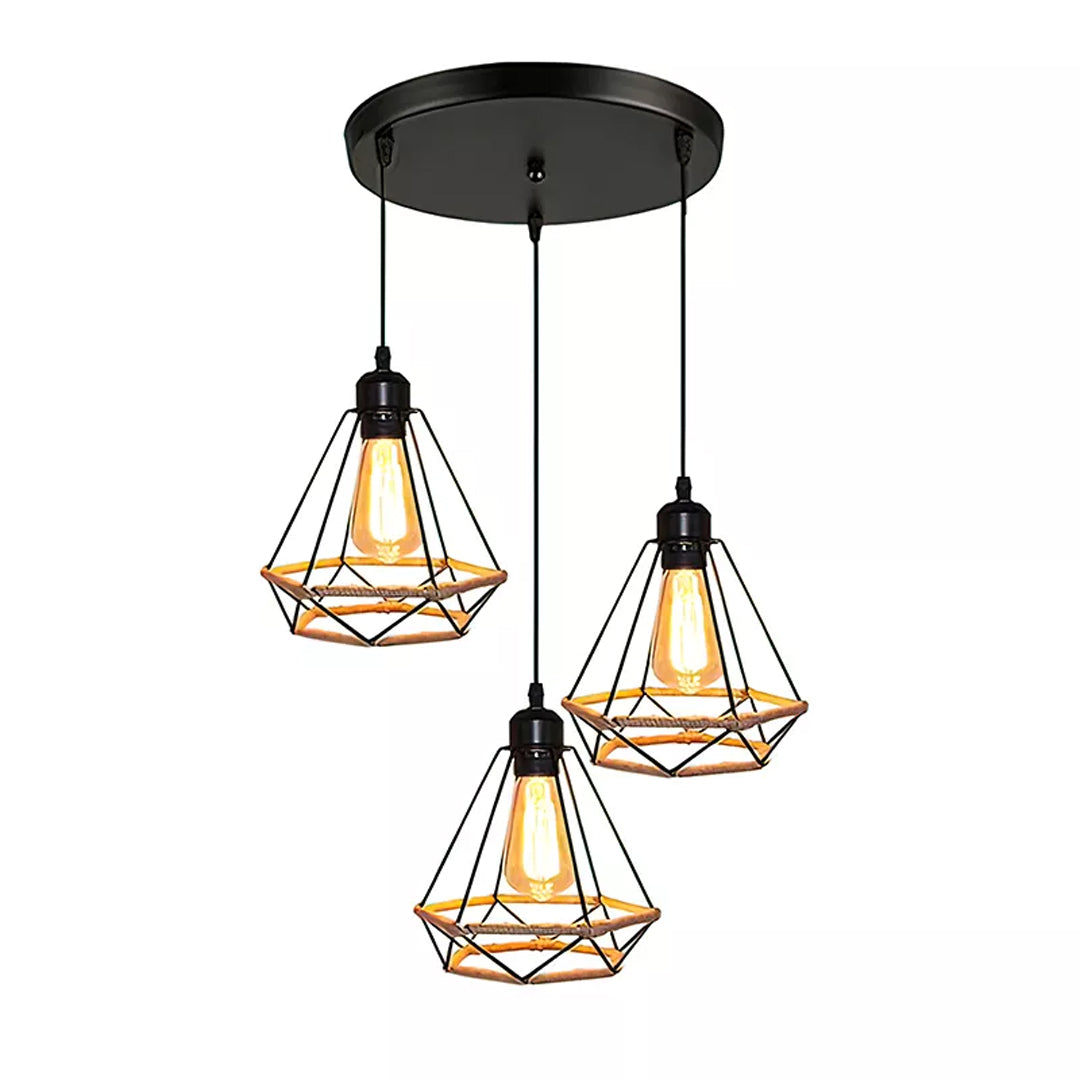 Pyramid Retro Hemp Rope E27 Pendant Light Vintage Loft Iron Droplight Living Room Kitchen Industrial Pendant Lights
