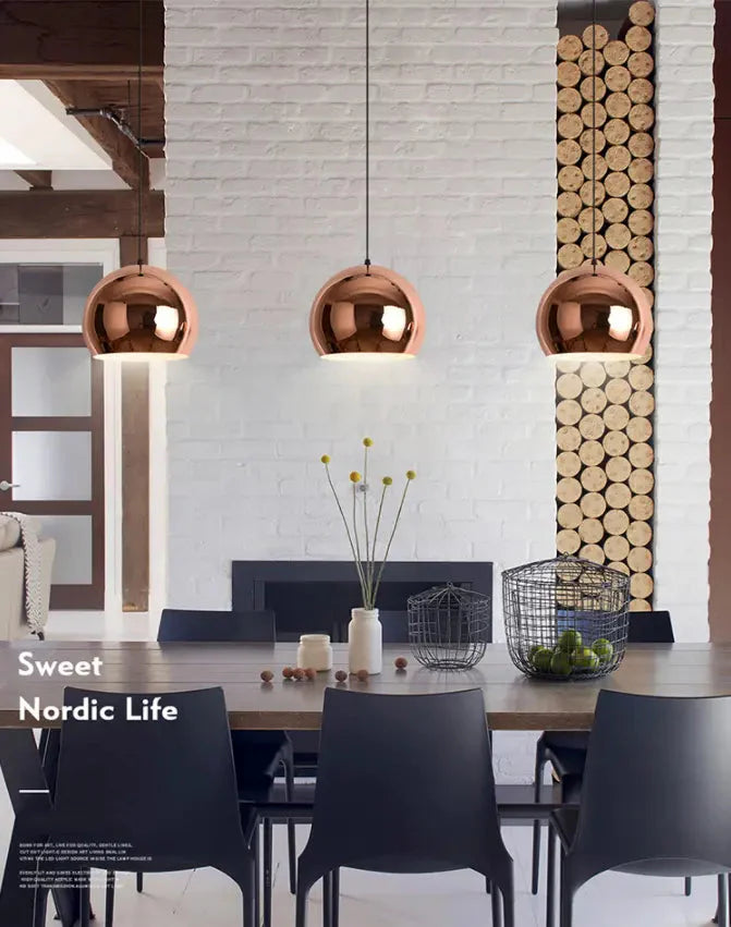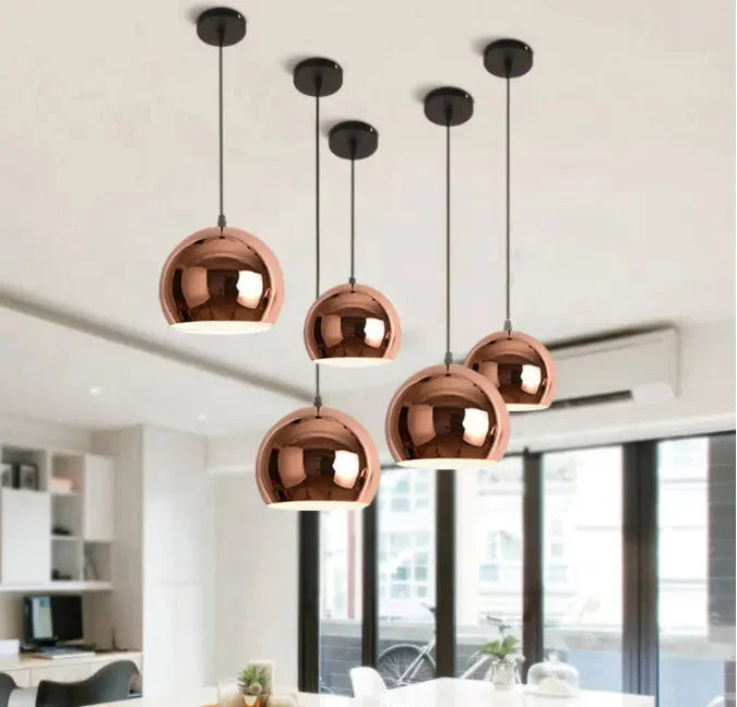 Shinny Rose Copper Single Glass Ball Pendant and Chandelier Lamp Luxury House