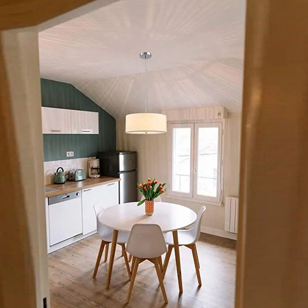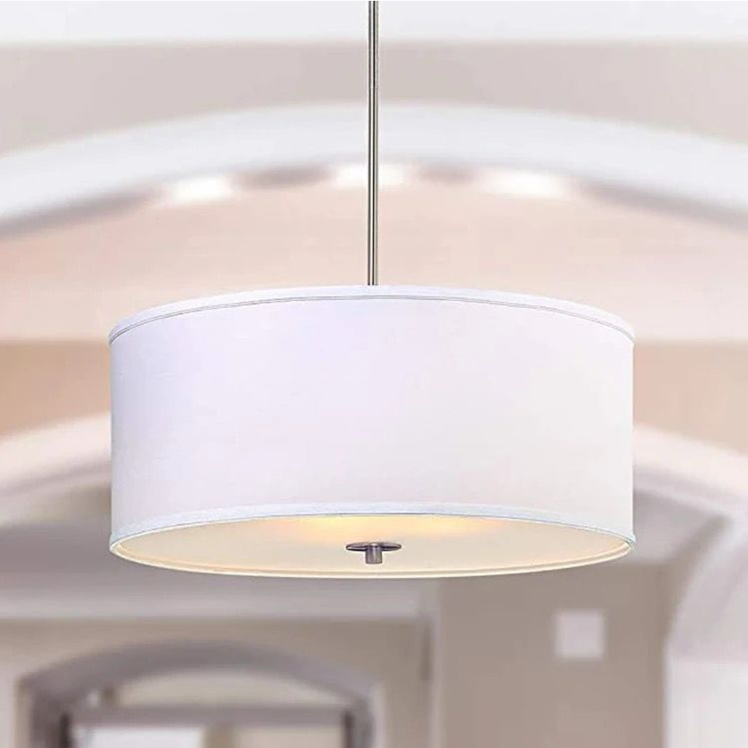 Modern Interior Fabric Acrylic Lamp White Linen Drum Lighting Pendant Light Hanging lamp For Living Room