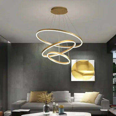 Modern Luxury Led Linear Hanging Pendant Light Villa Hotel Living Room Ring Round Circle Chandelier