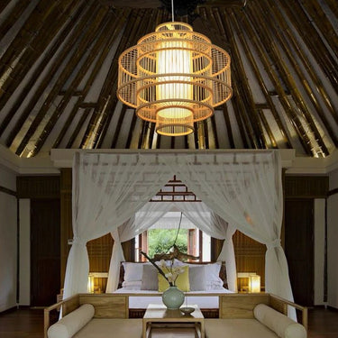 Natural rattan pendant light bamboo shade unique dinning room decorative E27 holder